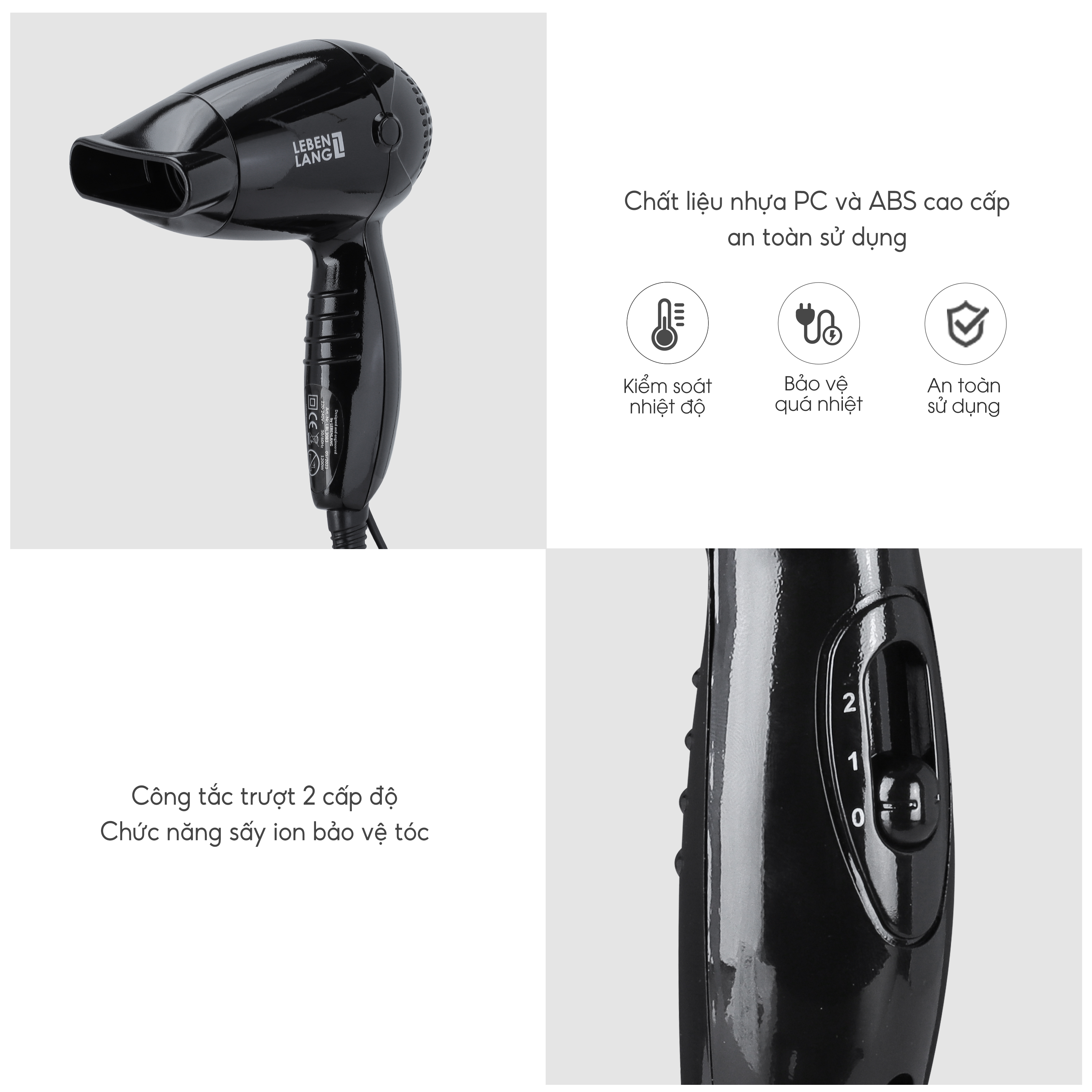 Máy sấy tóc mini Lebenlang LBL3083, chống xơ rối tóc bằng công nghệ ion 1200W, nhỏ gọn tiện lợi, bảo hành 2 năm - hàng chính hãng 6 LÝ DO NÊN CHỌN MÁY SẤY TÓC MINI LBL3083 CỦA LEBENLANG - Công Suất Mạnh Mẽ 1200W - Công Nghệ Ion Chống Xơ Rối Tóc - Chất Liệu Nhựa PC và ABS