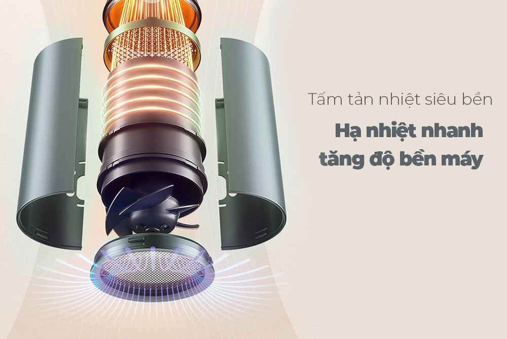 Động cơ không chổi than tốc độ cao 110.000 rpm, tốc độ gió 65m/s, làm khô tóc ngắn chỉ trong 40 giây Cảm biến kiểm soát nhiệt thông minh NTC, kiểm soát nhiệt độ 100