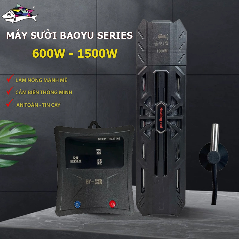 - Sưởi Baoyu BY-S1500 1500W (Thích hợp cho bể: 800-1500L) Việc duy trì nhiệt độ ổn định là yếu tố then chốt cho sức khỏe và sự phát triển của cá cảnh. Nếu bạn đang tìm kiếm một dòng máy sưởi hiệu năng cao, an toàn tuyệt đối và phù hợp với các hồ cá, bể lọc lớn, Máy sưởi bể cá Baoyu BY-S800 chính là giải pháp tối ưu. Với dải công suất rộng từ 600W đến 1500W, sản phẩm này đã và đang là lựa chọn hàng đầu của cộng đồng nuôi cá chuyên nghiệp I. Những Ưu Điểm Vượt Trội của Dòng Máy Sưởi Bể Cá Baoyu BY-S800