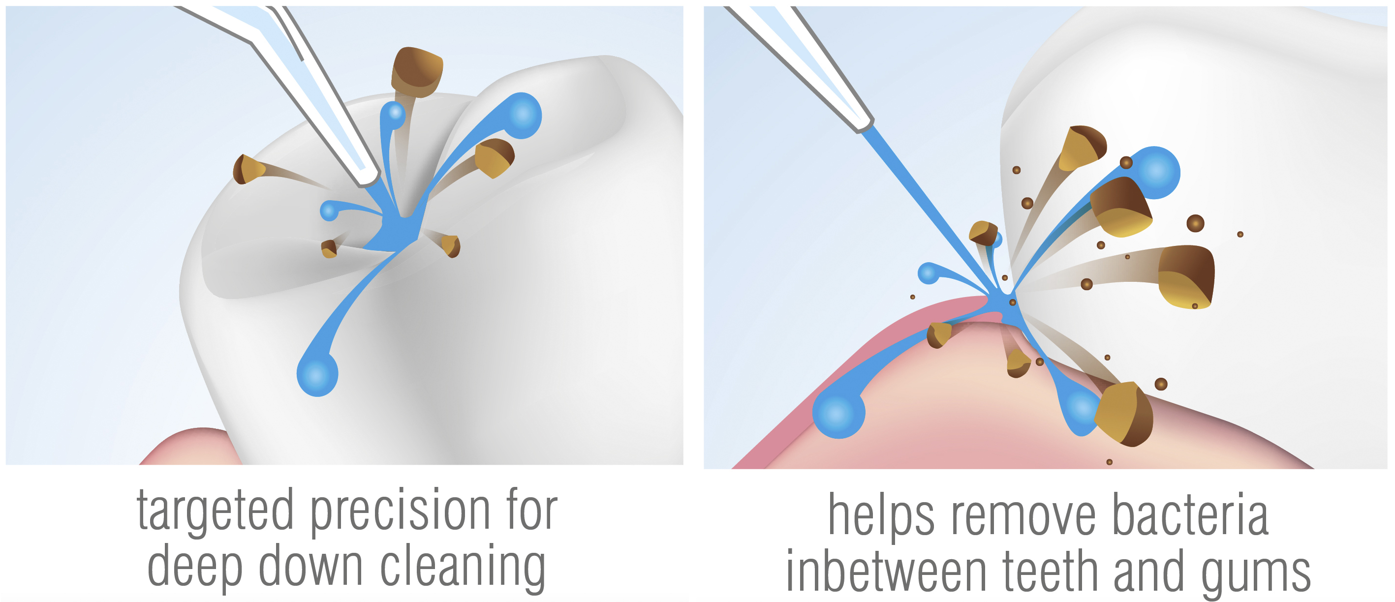 Khi cần làm sạch kẽ răng, tăm sẽ làm rộng kẽ răng, chỉ nha khoa đôi khi bất tiện trong khi bản chải không giúp được thì chiếc vòi với đầu cao su ghé sát