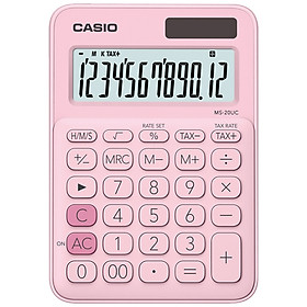 Máy Tính Để Bàn Casio MS20UC-PK - Loại để bàn mini - 12 chữ số - Tự động tính toán giá cộng thuế, giá trừ thuế, khoản chiết khấu, giá bán, số tiền thuế, số