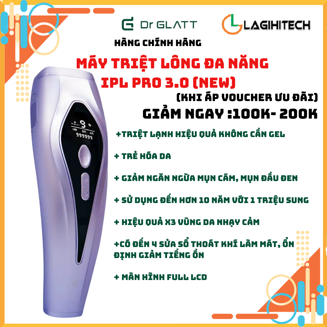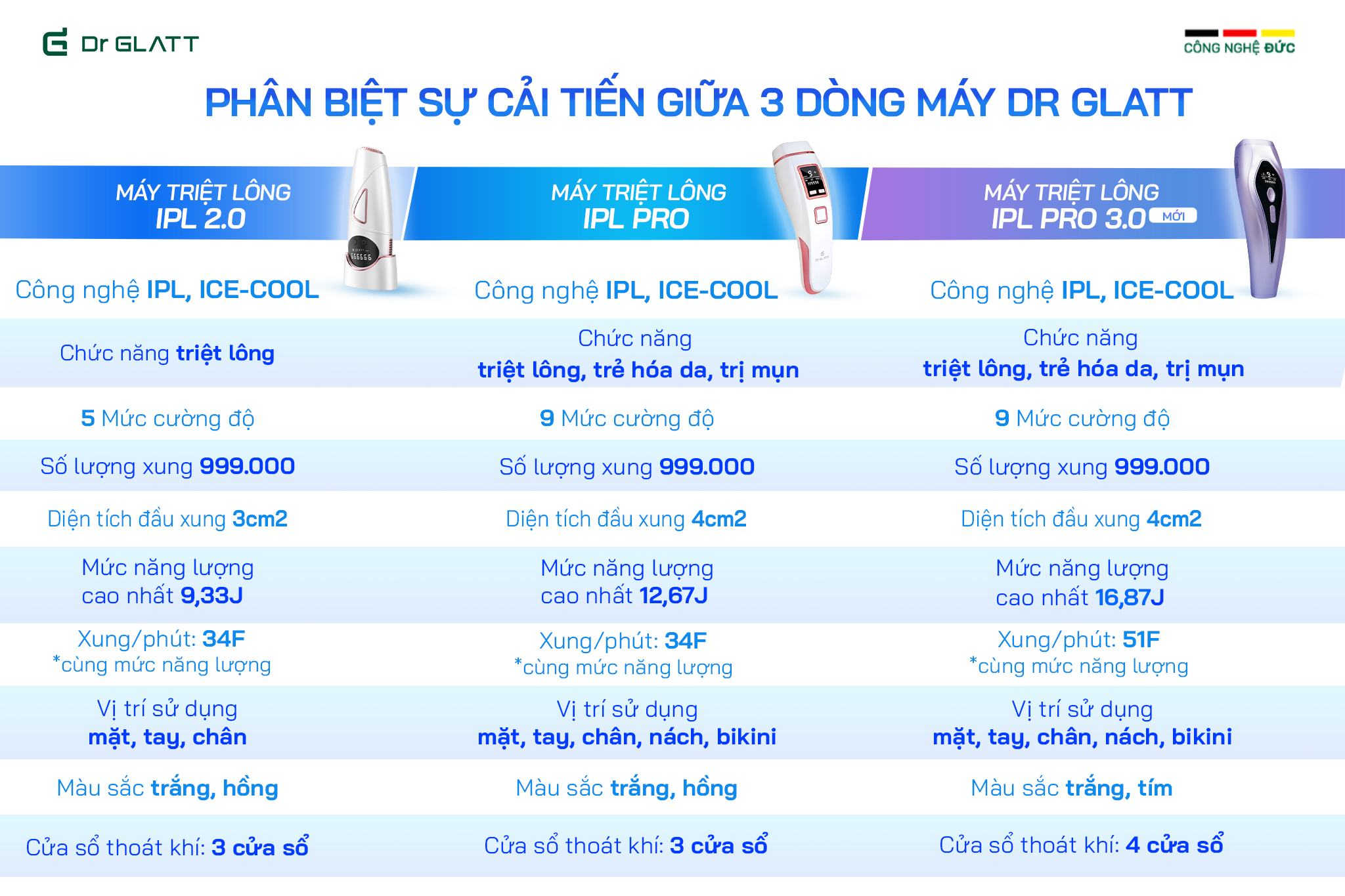 MÁY TRIỆT LÔNG ĐA NĂNG IPL PRO 3.0 DR GLATT HÀNG CHÍNH HÃNG THƯƠNG HIỆU ĐỨC Hơn 80% những ai đã từng dọn lông bằng nhổ, cạo, wax,… nhưng không hiệu quả đều gặp tình