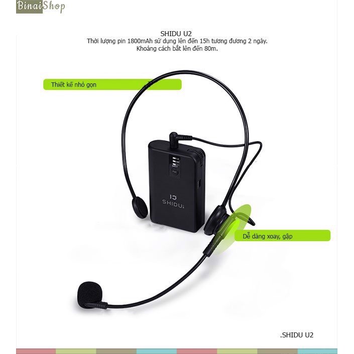 - Hỗ trợ 2 Micro : 1 micro gài tai Shidu U2 và 1 micro cầm tay Shidu U5. Có thể sử dụng được 2 mic đồng thời cho 2 người cùng thuyết trình.