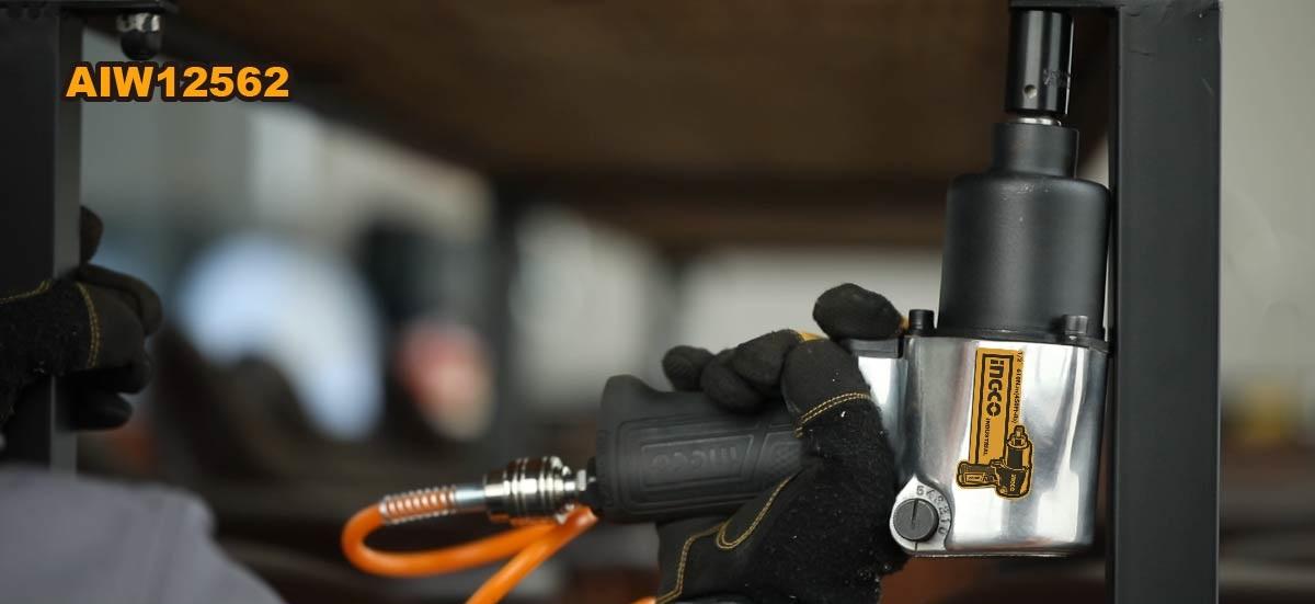 Mua tại TiktokDụng cụ vặn buloong dùng khí nén INGCO AIW12562 có kích thước khá nhỏ gọn, nhẹ nhàng và thuận thiện mang đi lại khi có việc cần dùng tới, chuyên được dùng để tháo hoặc siết chặt buloong trong các ngành sửa chữa xe máy, xe tải, xe ô tô là máy được sản xuất tiến bộ qua nhiều thế hệ tạo nên một sản phẩm vận hành mạnh mẽ và luôn ổn định, đáp ứng được như cầu của người sử dụng, có khả năng chống chịu tốt, chịu được sức ép, lực va chạm hay rơi vở và có tuổi thọ lâu dài sau mỗi lần sử dụng, bên ngoài được sơn một lớp màu đen mang kiểu dáng hiện đại, có đầu mũi chắc chắn