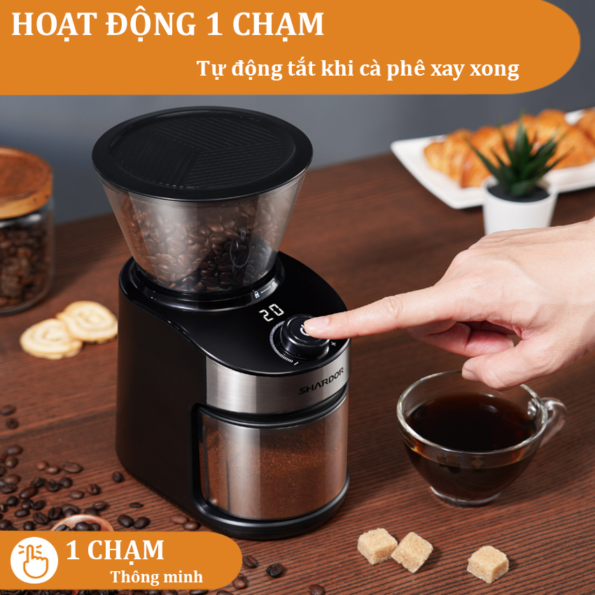 Mua tại TiktokMáy xay hạt cà phê cao cấp Shardor CG836B Máy xay cà phê Shardor CG836B được thiết kế sang trọng, hiện đại, máy nhỏ gọn và tinh tế sẽ đáp ứng được nhu cầu của các hộ gia đình, quán cà phê nhỏ hay cho văn phòng. Chức năng định lượng cà phê