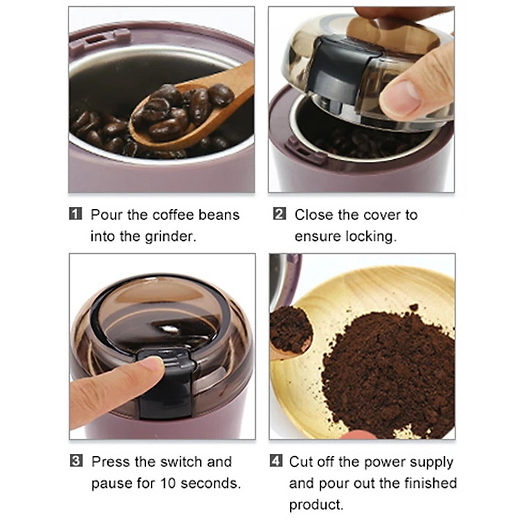 Easy to use: Put the beans in the container, start pressing the button, release the button for about 10-35 seconds, then you can.