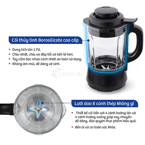 Mô tả sản phẩm: • Thân máy được làm từ chất liệu thuỷ tinh cao cấp, đảm bảo an toàn thực phẩm, dễ dàng quan sát quá trình xay và vệ sinh nhanh chóng •