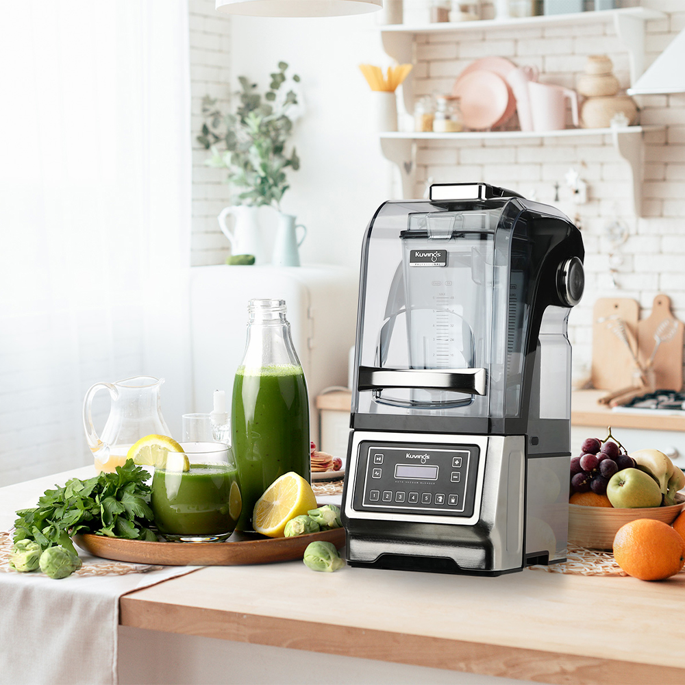 Máy xay sinh tố tự động hút và xả chân không dành cho kinh doanh hiệu Kuvings hoạt động liên tục 3 phút một lần xay và xay được 200+ ly mỗi ngày, gồm 1 cối xay với công suất cực mạnh 3.5 HP – 32,000RMP, 35 công thức tối ưu hóa cho menu quán cà phê, sinh tố được tích hợp sẵn cùng với 5 chế độ nhớ, dao xay cao cấp chuyên dụng cho kinh doanh không sinh nhiệt với công nghệ xay 3 chiều trong môi trường chân không cho nước sinh tố mịn hơn, màu sắc tươi hơn, chậm tách nước, ít bọt và giữ được nhiều Vitamin, Enzym trong rau củ quả. Bảng điểu khiển một chạm cảm ứng để điều chỉnh 5 chế độ xay tự động, chế độ xay nhanh, chế độ xay thủ công và nhồi, tự động đóng mở nắp, nắp chống ồn, chế độ tự động ngắt điện an toàn khi quá tải hay quá nóng và khóa an toàn khi gắn cối xay không đúng cách, có chế độ tiết kiệm điện tự động, thuận tiện sử dụng kinh doanh nhà hàng, quán bar, quán cafe, khách sạn, màu Inox.