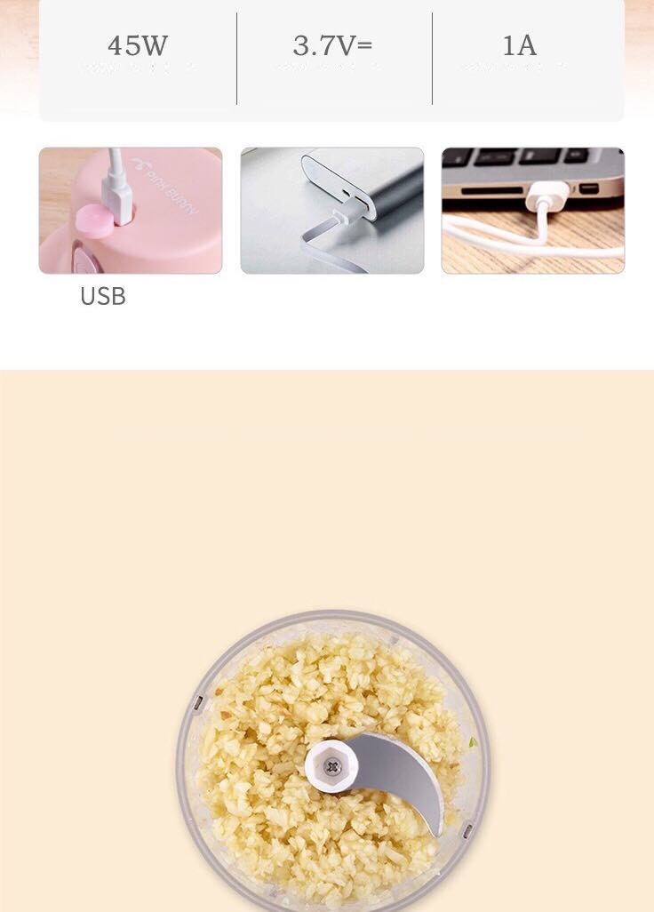 ✨Máy xay tỏi, xay thức ăn mini bằng pin qua cổng usb