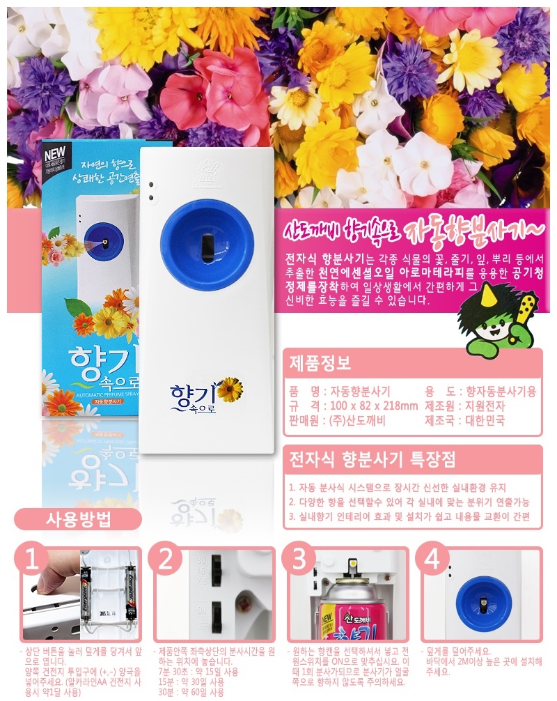 THÔNG TIN SẢN PHẨM: Máy xịt phòng tự động Sandokkaebi ~ hàng nội địa Hàn Quốc Tên sản phẩm: Máy Xịt Phòng Tự Động Hàn Quốc Sandokkaebi Tính năng: Máy xịt thơm phòng tự động