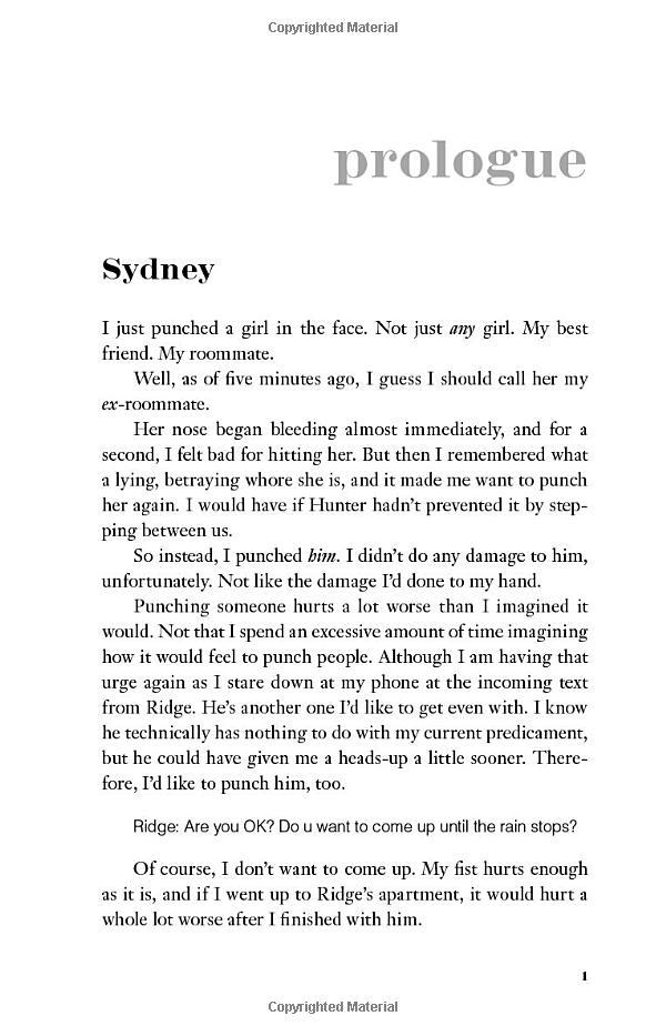 At twenty-two years old, Sydney is enjoying a great life: She’s in college, working a steady job, in love with her wonderful boyfriend, Hunter, and rooming with her best friend, Tori. But everything changes when she discovers that Hunter is cheating on her—and she’s forced to decide what her next move should be.