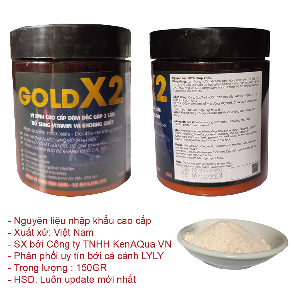 Mua tại TiktokMen vi sinh Gold x2 150GR đậm đặc cao cấp, bổ sung Vitamin và khoáng chất, làm trong nước, khử tanh, phân hủy thức ăn dư thừa cá Ưu điểm men vi sinh GOLD X2 :
