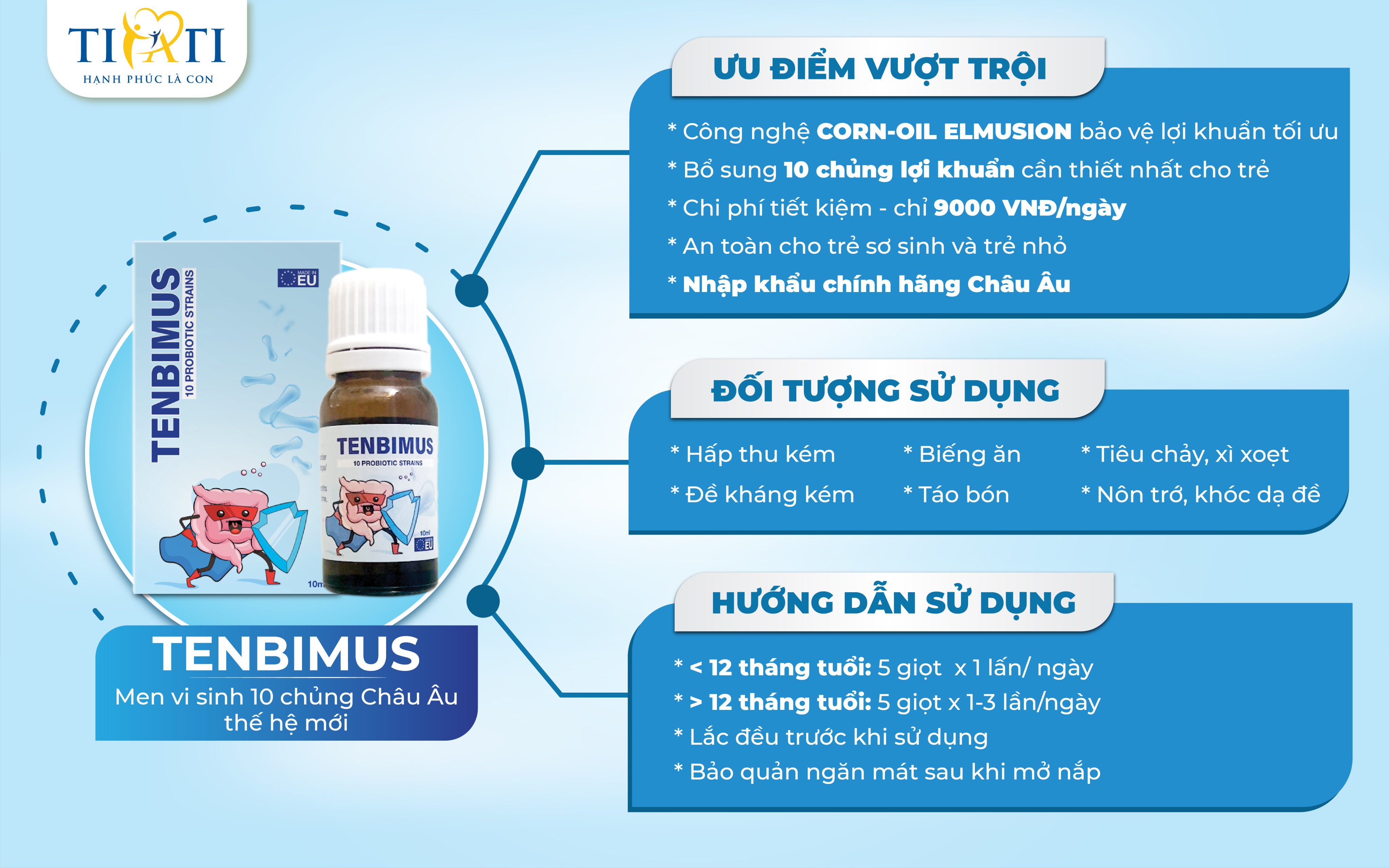Men vi sinh 10 chủng Châu Âu - TENBIMUS giải pháp toàn diện cho hệ tiêu hoá cho bé, cải thiện biếng ăn, tăng đề kháng, tăng hấp thu. Tại sao mẹ nên chọn men