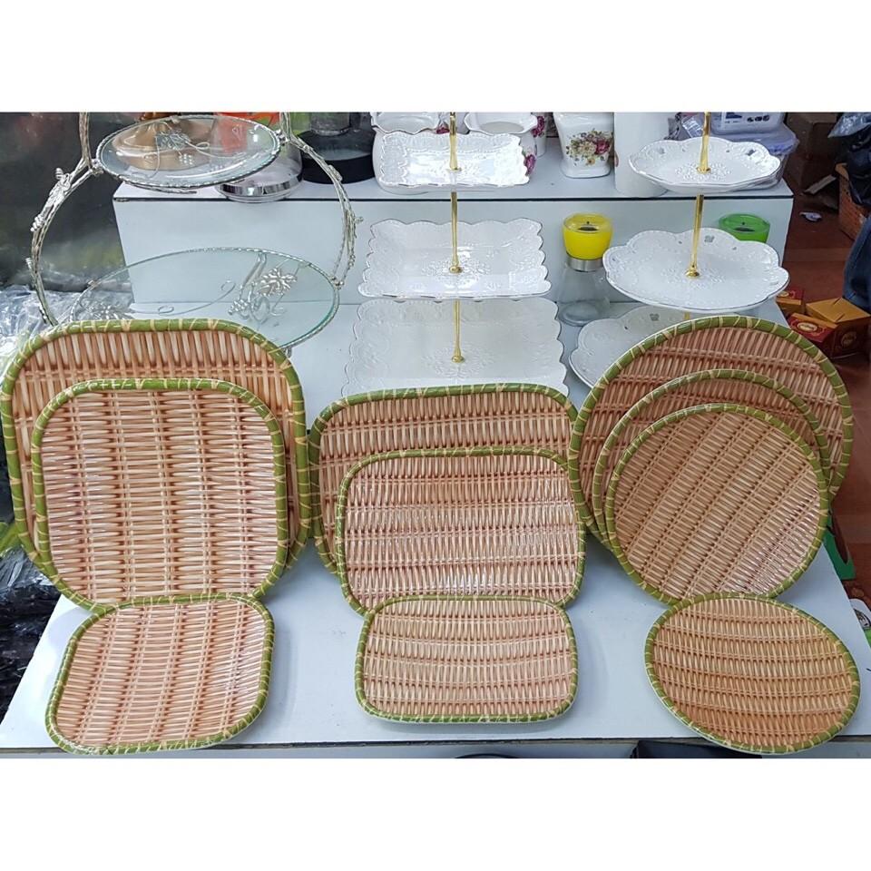 Dĩa nhựa giả mây tre melamine , mẹt đựng thức ăn bán bún đậu mắm tôm nhiều size - lh 0387371882