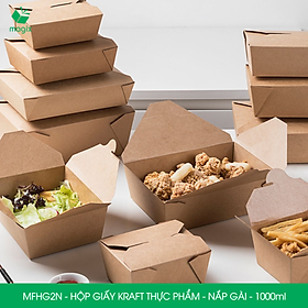 • MFHG2N - Hộp giấy Kraft đựng thực phẩm - Nâu 1.000ml (Miệng: 16.5x13.3 cm - Đáy: 15.5x12 cm - Cao: 5 cm)