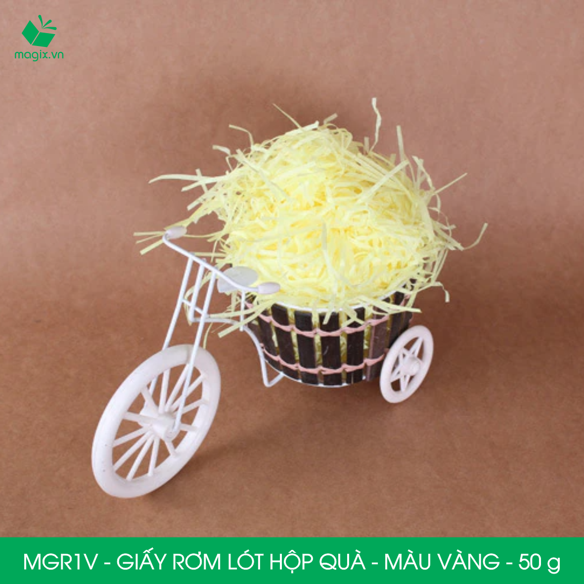 Giấy rơm lót hộp quà làm từ giấy tự nhiên có chất lượng cao như giấy fort hay kraft có định lượng từ 70-80gsm cắt thành sợi thẳng rộng 3mm và được làm bồng lên.