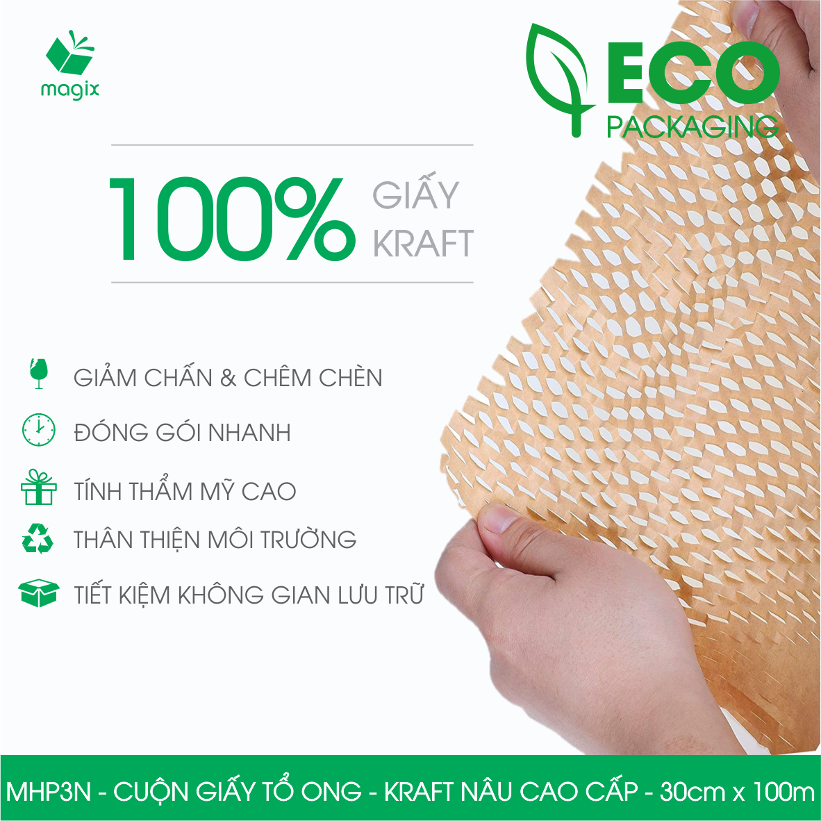✨MHP3N - 30cm x 100m - Cuộn giấy tổ ong chống sốc - Kraft nâu Cao Cấp - Giấy gói hàng, gói quà