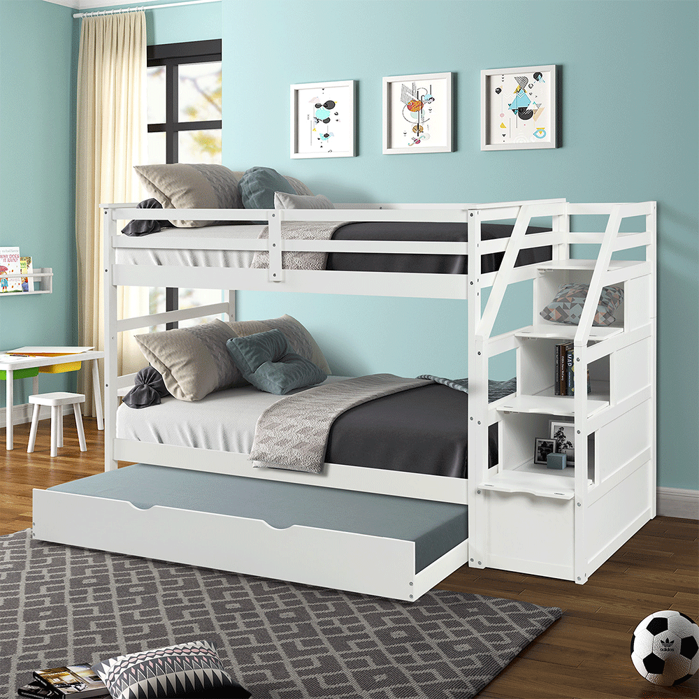 Giường tầng không chỉ giúp tiết kiệm không gian, mà còn là thế giới riêng của các bé. Giường tầng thang hộp XK Newport được thiết kế tối giản với 2 tầng có kích thước bằng nhau, thang rời tích hợp hộc đựng đồ tiện lợi. Khoảng cách giữa 2 tầng rộng rãi không sợ đụng đầu, kể cả với người lớn. Chất liệu gỗ thông xẻ sấy nhập khẩu được gia công tỉ mỉ, kết cấu chắc chắn, giúp các bé vui chơi an toàn và có những giấc ngủ ngon.