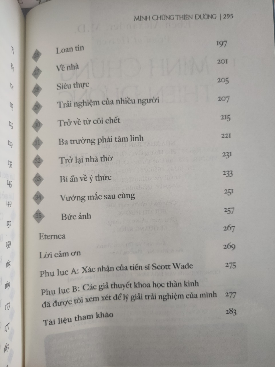 Minh Chứng Thiên Đường là một quyển sách đặc biệt mà người đọc, dù tin hay không tin vào “Thiên đường”, cũng sẽ ngạc nhiên, thích thú về sự diễn tả chi tiết hình thái duy vật của thế giới chúng ta đang sống trong sự đối chiếu với hình thái của một thế giới khác đẹp đẽ, rộng lớn, bao la, tràn đầy tình thương. Quyển sách này có thể giúp người đọc nhận ra được một thông điệp rằng “Trải nghiệm cận tử chính là một trải nghiệm về sự thức tỉnh trong một thế giới an lành bất tận với tình thương yêu vô điều kiện”.