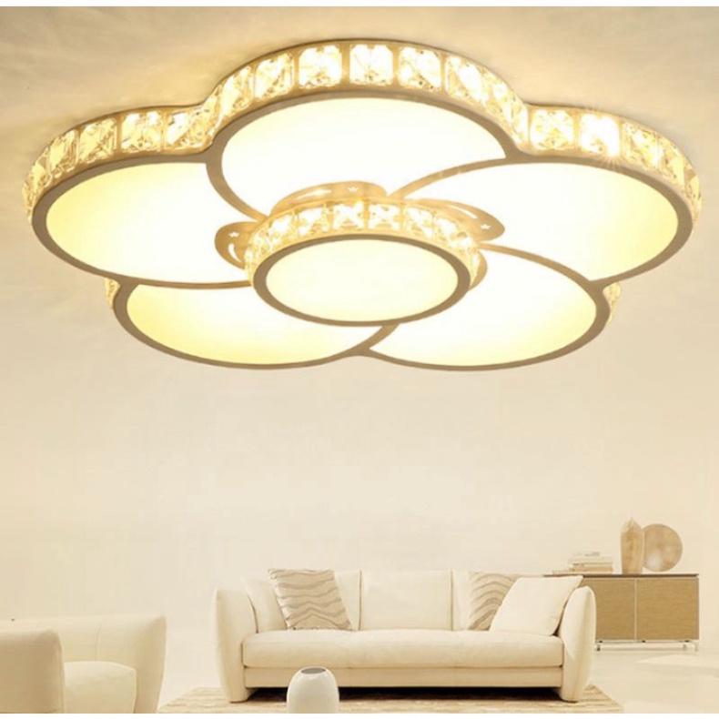 Đèn Mâm Ốp Trần Pha lê Trang Trí Phòng Ngủ Phòng Khách Led 3 Màu 220V OT16 Ngân Tin