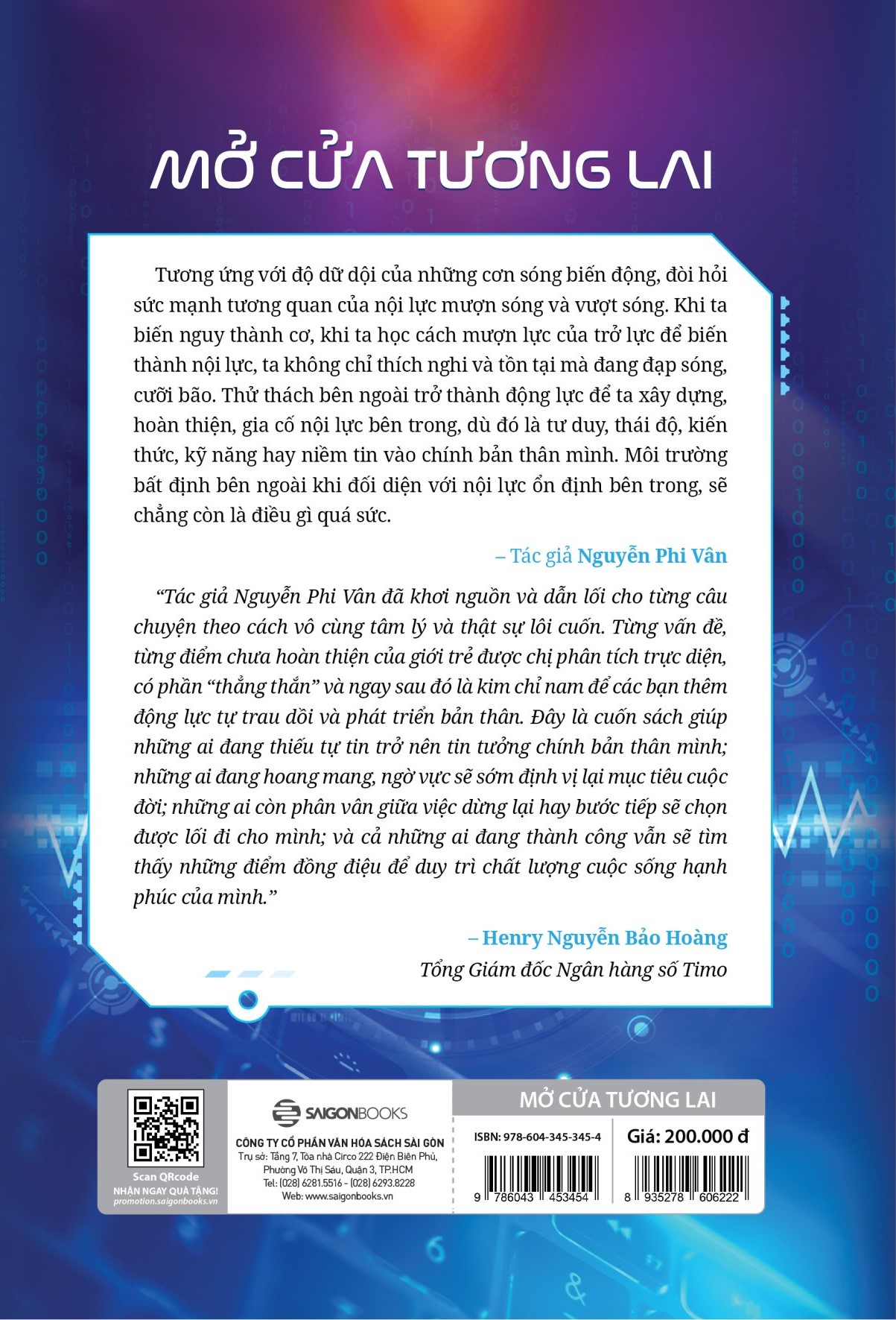 Với tác giả Nguyễn Phi Vân, Mở cửa tương lai không phải hành trình mang độc giả tới một chân trời mới, nơi có những thứ công nghệ hợp thời hay những kỹ năng sinh tồn phải có trong thời đại số, Mở cửa tương lai giúp những ai đang thiếu tự tin trở nên tin tưởng chính bản thân mình; những ai đang hoang mang, ngờ vực sẽ sớm định vị lại mục tiêu cuộc đời; những ai còn phân vân giữa việc dừng lại hay bước tiếp sẽ chọn được lối đi cho mình; và cả những ai đang thành công vẫn sẽ tìm thấy những điểm đồng điệu để duy trì chất lượng cuộc sống của bản thân.