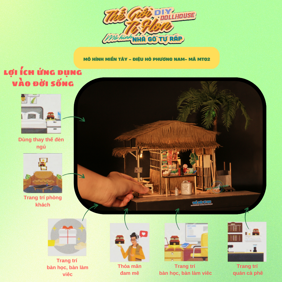 SẢN PHẨM KHÔNG ÁP DỤNG ĐỔI TÊN BẢNG HIỆU GIÁ SẢN PHẨM CHƯA BAO GỒM THUẾ VAT, KHÁCH CẦN XUẤT VAT XIN VUI LÒNG LIÊN HỆ THẾ GIỚI TÍ HON QUA CHATBOX Mô Hình Gỗ DIY Miền Tây Sông Nước Tự Lắp Ráp - Điệu Hò Phương Nam - MT02 Phá kỷ lục với thiết kế mới tối ưu thao tác lắp ráp, và có nhiều đồ miniature chất lượng đẹp như đồ thiệt.