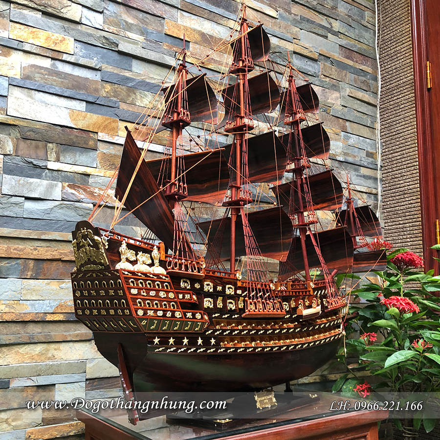 MÔ HÌNH THUYỀN CỔ FRANCE II - TÀU BUỒM CỦA PHÁP - Mô hình thuyền cổ FRANCE II có 4 kích thước 0.07m3, 0.16m3, 0.23m3 và 0.30m3: +0.07m3 có kích thước là: Chiều dài: 70cm