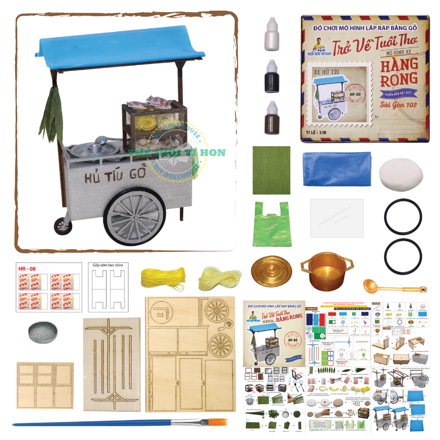 ✨MÔ HÌNH TỰ LẮP RÁP DIY SÀI GÒN TÍ HON - XE HỦ TÍU GÕ - HR08