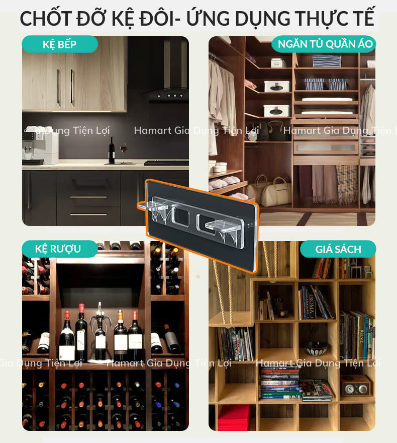 ️ Móc Dán Giá Đỡ Chia Ngăn Tủ Hamart siêu dính giúp bạn bổ sung thêm diện tích các ngăn chứa của tủ quần áo, giá kệ 1 cách siêu tiện ích mà ko cần