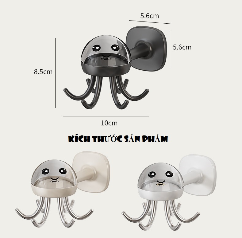 Chất liệu: Nhựa Màu sắc: GIAO NGẪU NHIÊN MÀU Sản phẩm: gồm 1 móc treo hình bạch tuộc+ 1miếng dán Thiết kế theo hình chú bạch tuộc con dễ thương, các móc tua có thể