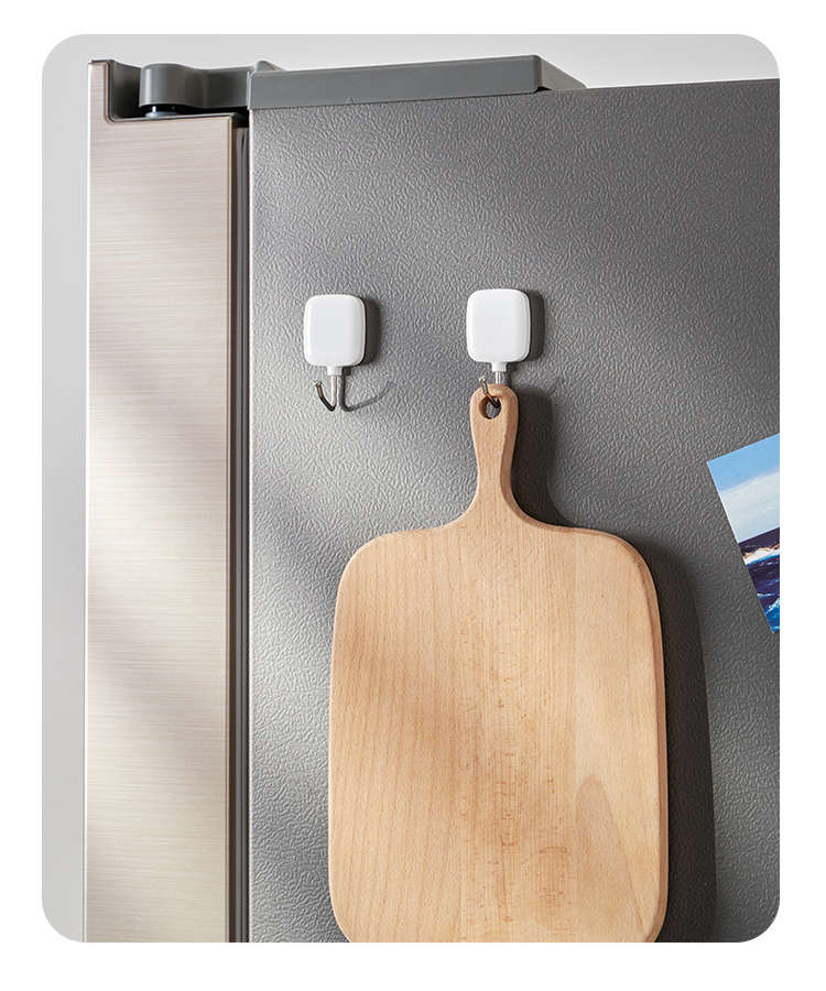 - Làm sạch bề mặt kim loại nơi cần treo móc, đặt móc nam châm dính vào. - Ấn thật chặt khoảng 30 giây, rồi để khoảng 1h sau mới có thể treo đồ vật