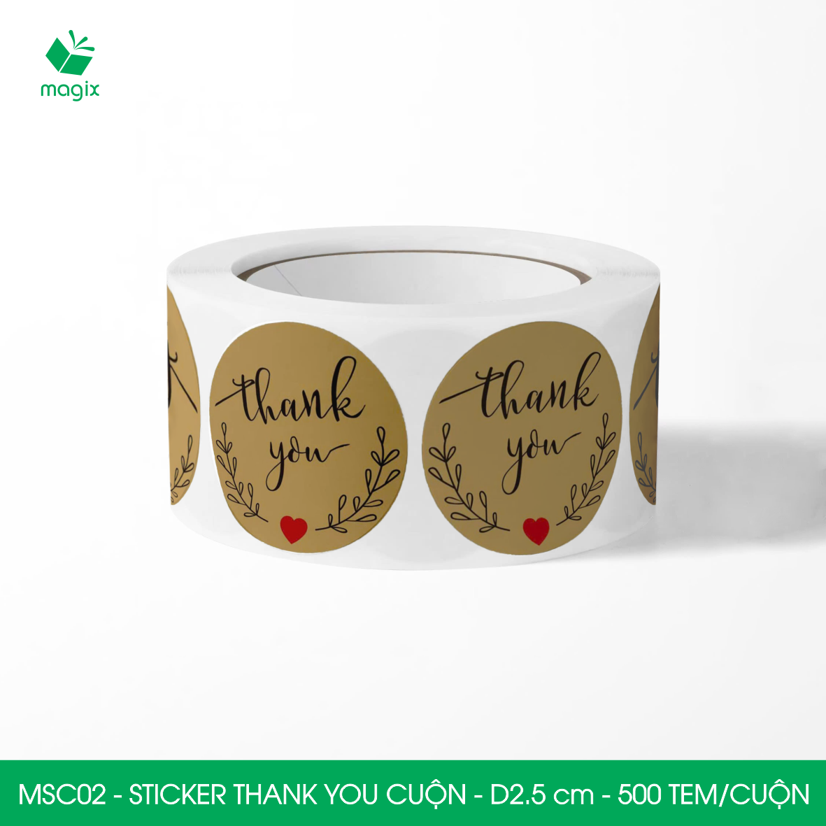 ✨MSC02 - D2.5 cm - 1 Cuộn 500 sticker thank you tròn, nhãn dán thank you, tem dán cảm ơn