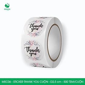 ✨MSC06 - D2.5 cm - 1 Cuộn 500 sticker thank you tròn, nhãn dán thank you, tem dán cảm ơn