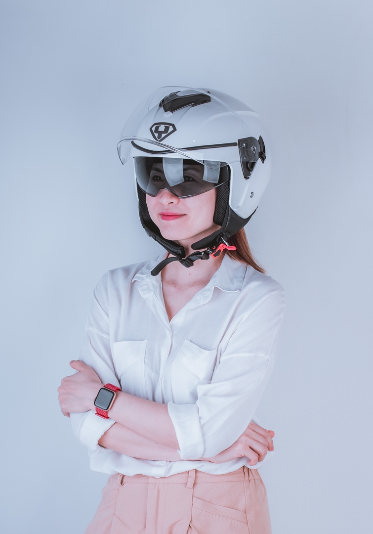 THIẾT KẾ THÔNG MINH - Phong cách thiết kế: mũ kiểu 3/4 kèm kính dài, mũ được thiết kế dáng tròn, đi kèm 2 miếng ốp má, giúp tăng thêm hiệu quả bao phủ, bảo