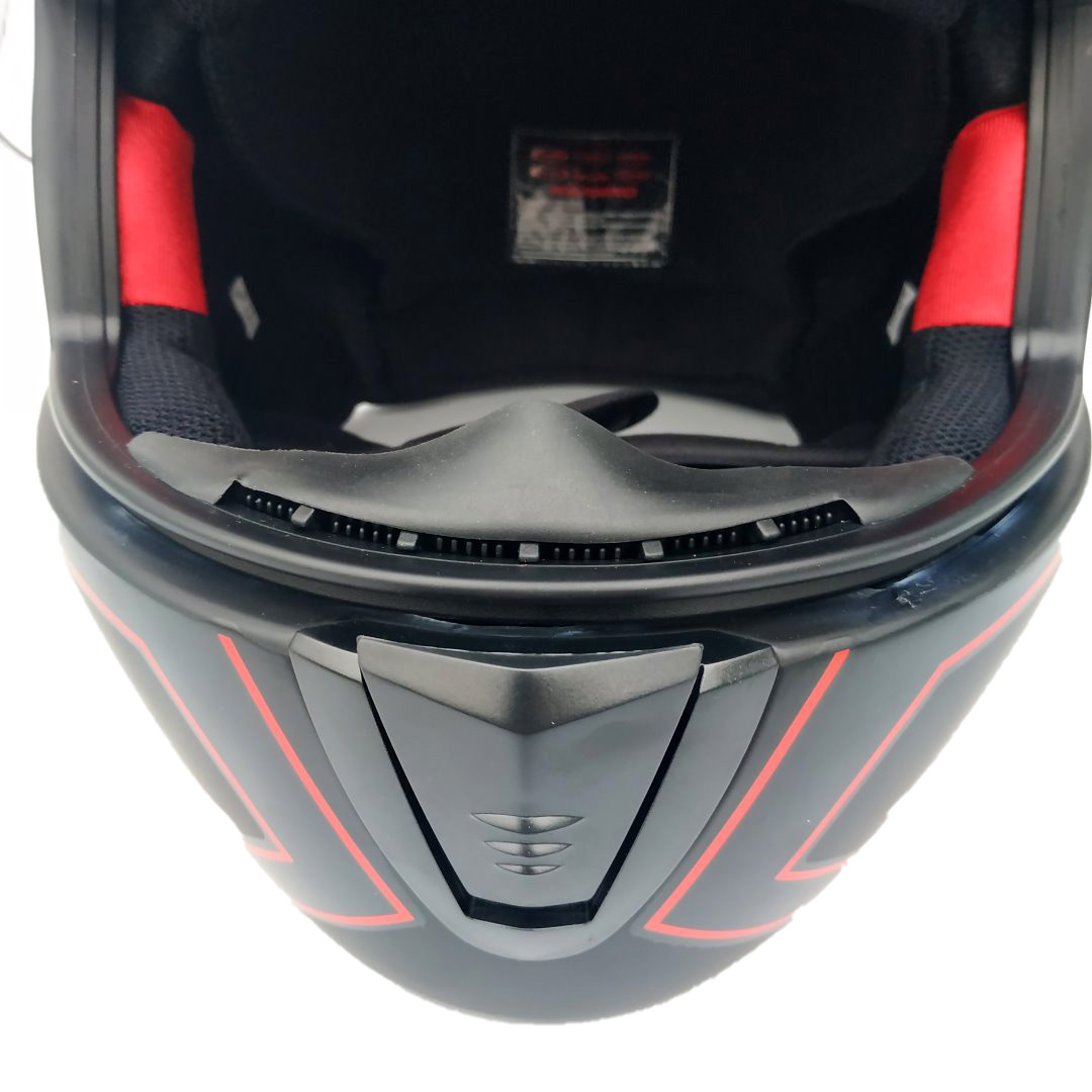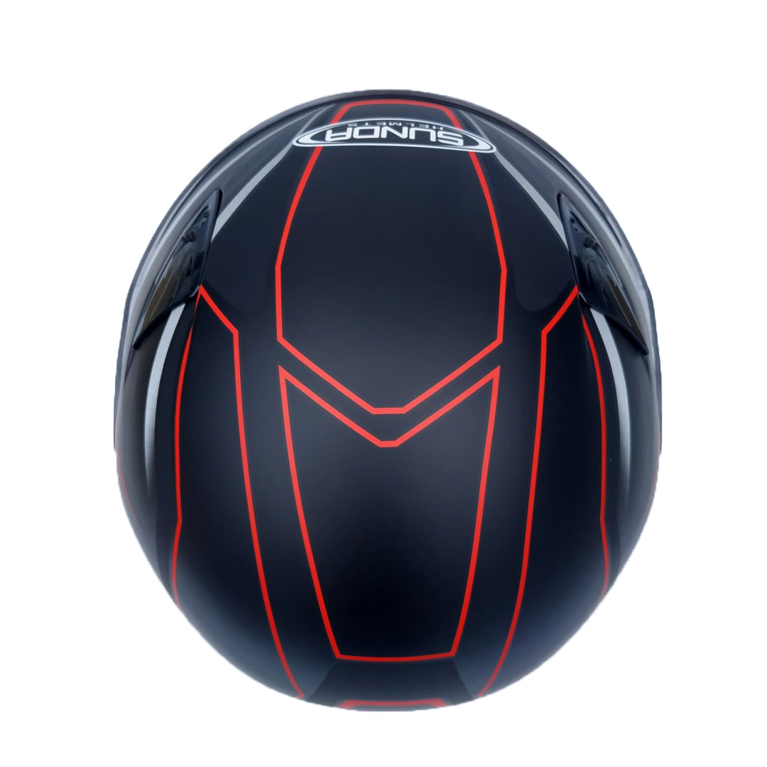 Mũ bảo hiểm fullface Sunda 2000c đen nhám tem đỏ: Nón được thiết kế nhỏ gọn, lòng nón sâu, phù hợp cho người có vòng đầu từ 55-59 cm - đây là size phổ biến