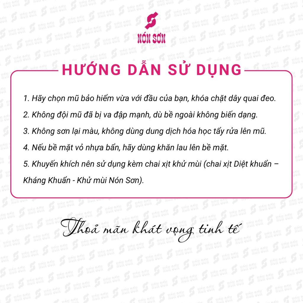 Thông tin sản phẩm Mũ Bảo Hiểm chính hãng Nón Sơn • Thương hiệu: Nón Sơn • Xuất xứ: Việt Nam • Chất liệu: Chất liệu bằng nhựa ABS nguyên sinh được nhập khẩu. •