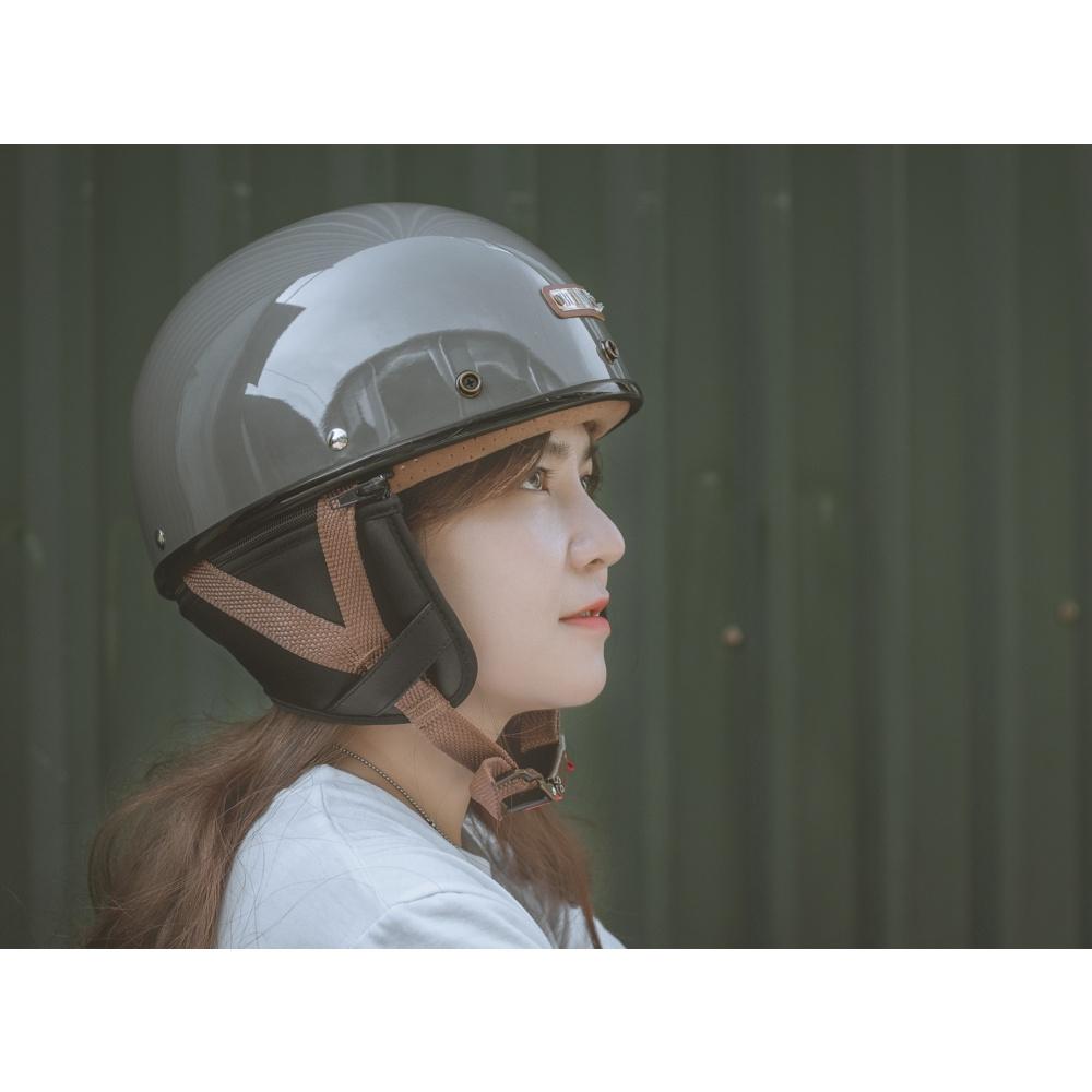 Mũ bảo hiểm nửa đầu freesize Rona hali viền bạc kèm kính phi công bạc Mũ bảo hiểm nửa đầu Rona haly viền bạc kèm kính phi công bạc cho nam và nữ đi xe