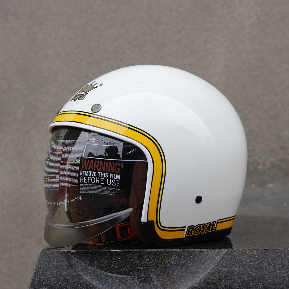 Thông tin chi tiết: Thương hiệu: Royal (Mafa VN sản xuất) Model: M139 Luxury Loại: 3/4 đầu, có kính âm giảm UV Kính: Kính âm nhỏ màu trà khói, chống tia UV, bụi, gió. Mái