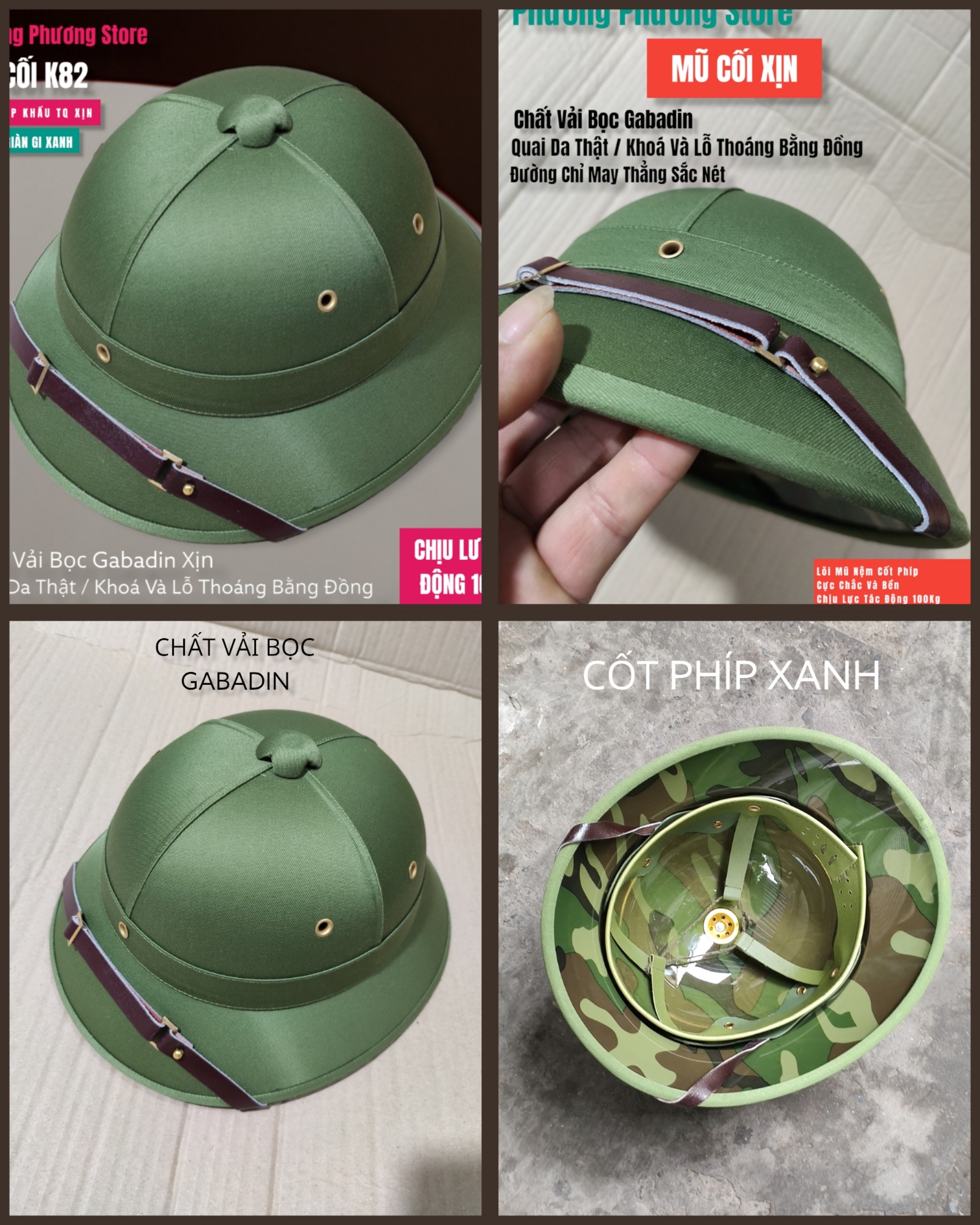 MŨ CỐI XỊN VẢI BỌC GABADIN QUAI DA THẬT LÒNG CỐT PHÍP GIÀN GI XANH CHỊU MƯA CHỊU NẮNG CHỊU VA ĐẬP SHOP PHƯƠNG PHƯƠNG STORE BÁN SẢN PHẨM MŨ CỐI XỊN HÀNG NHẬP KHẨU