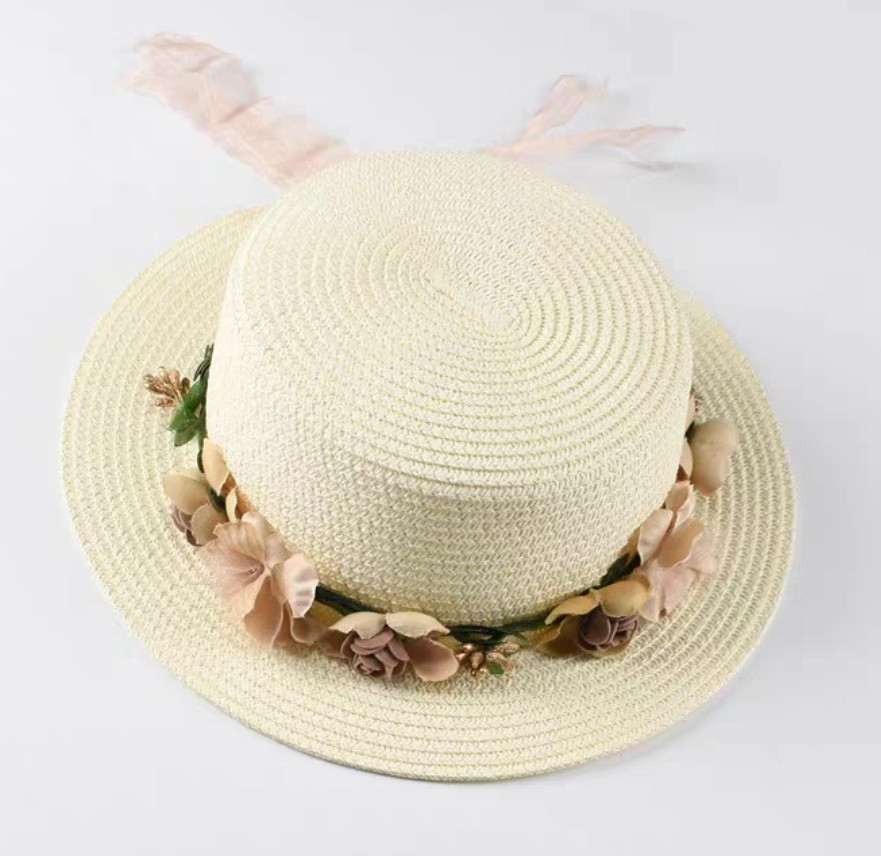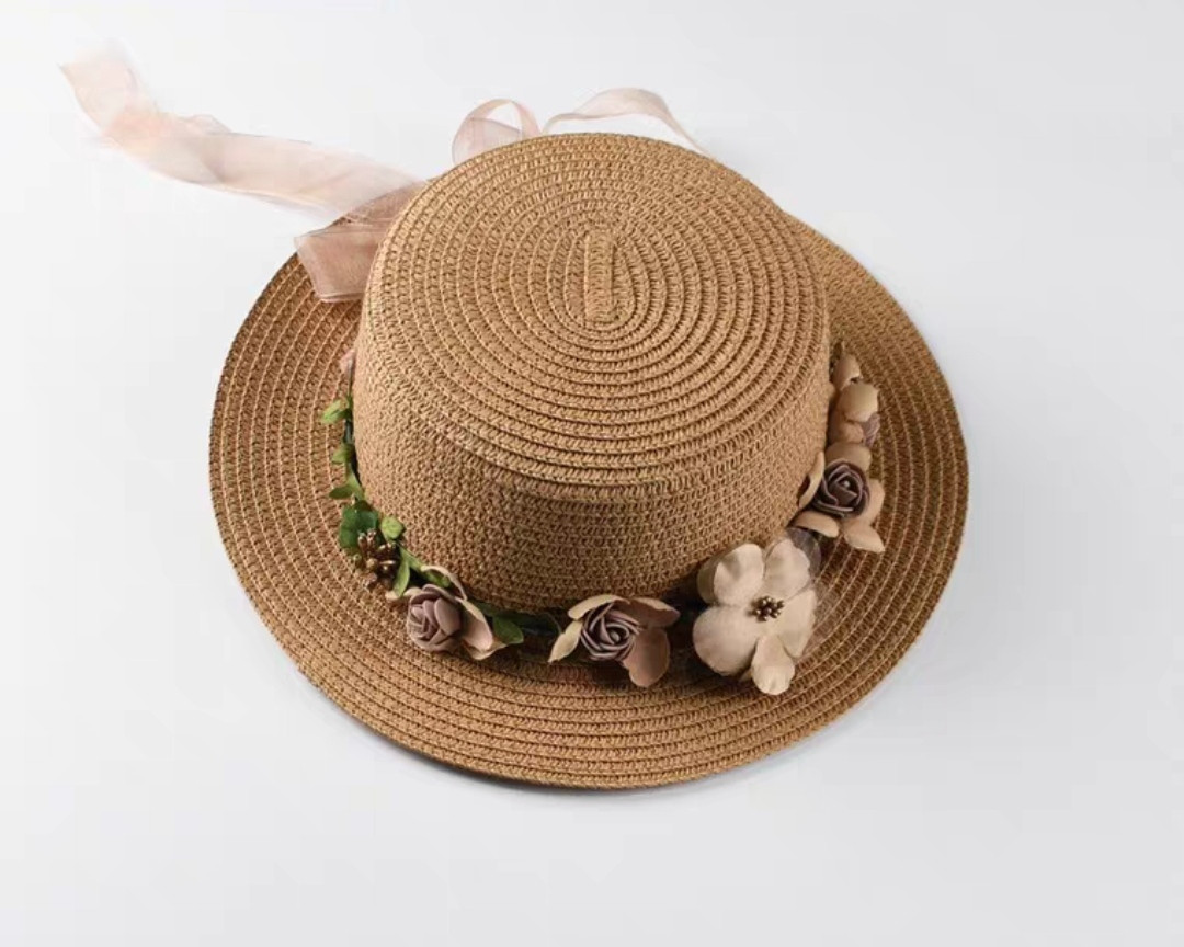 Mũ đi biển đẹp nón rộng vành nhỏ đai hoa lá thời trang Hàn Quốc Chất liệu cói