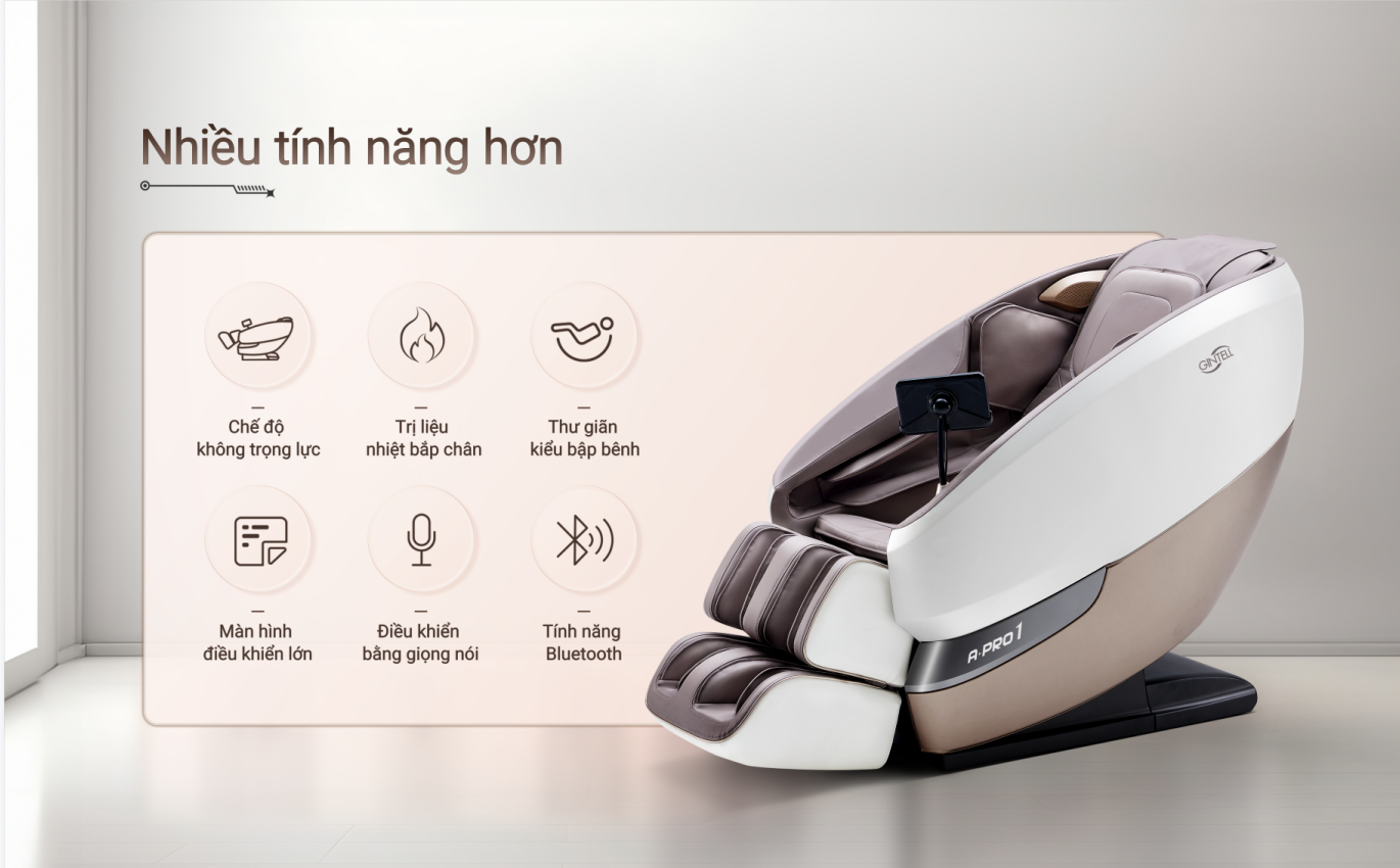 Là 1 dòng máy phù hợp với tất cả nhu cầu sử dụng trong gia đình bạn với đa tính năng cũng như chương trình bài tập. Bên cạnh các tính năng giúp thư giãn, A PRO 1 còn mang trên mình một gam màu sắc Xám Nâu tao nhã, phù hợp với mọi tông màu/ thiết kế của nhà bạn, giúp bạn có một trải nghiệm đa giác quan về cảm giác cũng như thị giác.
