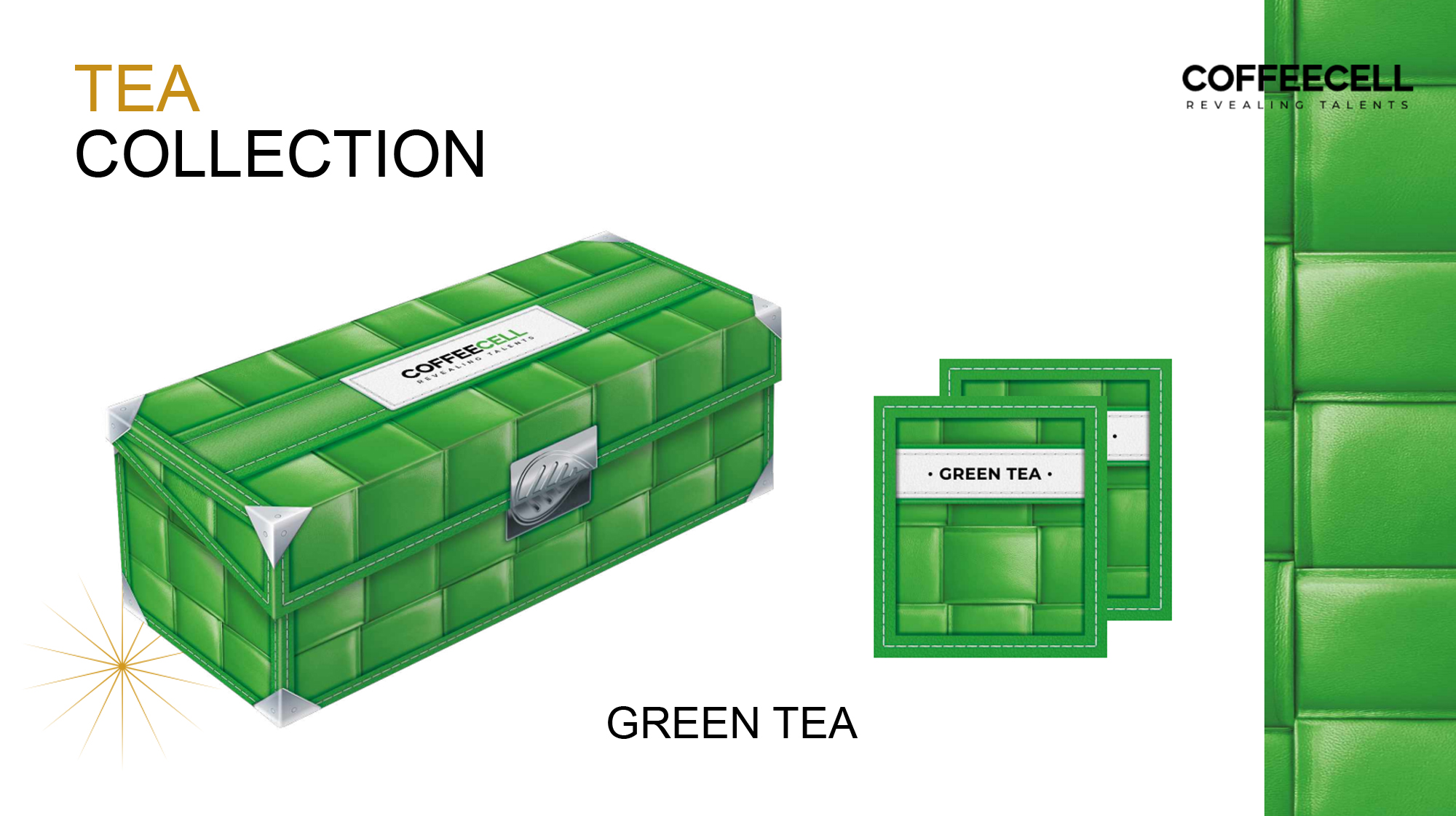 TRÀ XANH VỚI NHÂN SÂM HOÀNG ĐẾ - COFFEECELLTrà nguyên lá ngọt thanh và chát nhẹ, Chống oxy hóa, Tăng cường tập trungHương thơm thảo mộc tươi với màu mật ong óng vàng và dư vị thoang thoảng mùi hoa...