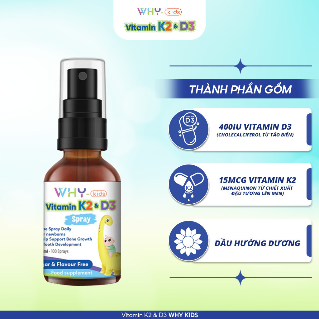 ✨[Mua 2 Tặng 1 Kem] Vitamin D3 K2 Whykids Dạng Xịt Giúp Bé Tăng Khả Năng Hấp Thụ Canxi Tốt Cho Sức Khoẻ - Chai 15m