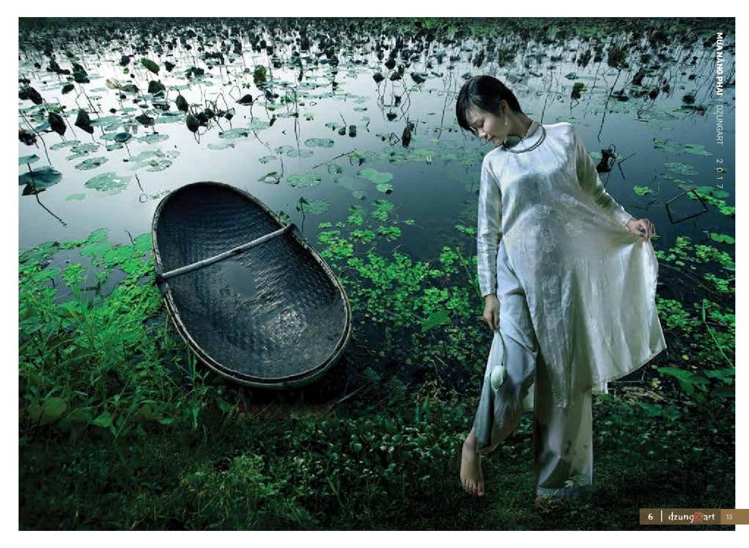 Trong những tác phẩm của mình, tác giả cũng hiểu điều này nhưng anh ấy vẫn muốn “tham lam”, vẫn muốn làm cả hai, cả hình thức và nội dung. Cho nên cái nội dung – áo dài được chọn là đề tài xuyên suốt. Mùa Nắng Phai, một cái tên gợi không thôi, những cô gái mặc áo dài cũ, yếm váy đụp cũ trên một bối cảnh cũ, nhà Bắc Bộ 3 gian 2 chái, cầu ao đá, giếng chùa, cổng làng, ao bèo; những vẻ đẹp cũ, không khí cũ yên bình, mùa nắng cũ hay mùa của thời gian đã qua… Hóa ra phong cảnh làng quê, những cô gái trẻ đẹp nõn nà, những lụa bạch, yếm phai, những cơn mưa, những đồng lúa, những ao bèo, những ánh sáng bóng tối, những thân phận, những nỗi niềm… cũng chỉ là nguyên liệu để tác giả làm mình, làm Mùa Nắng Phai của riêng mình.