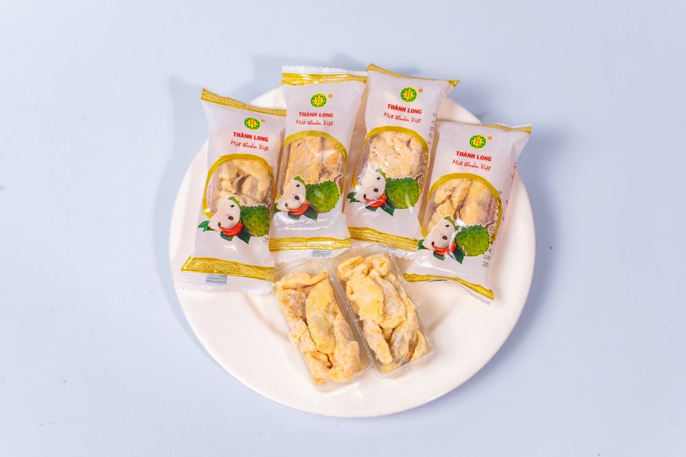 SẢN PHẨM CỦA HỘ KINH DOANH CƠ SỞ BÁNH MỨT THÀNH LONG 1 XOÀI SẤY DẺO Mứt Thuần Việt THÀNH PHẦN : : Trái xoài (80%), đường tinh luyện, muối i-ốt, chất bảo quản (E202),
