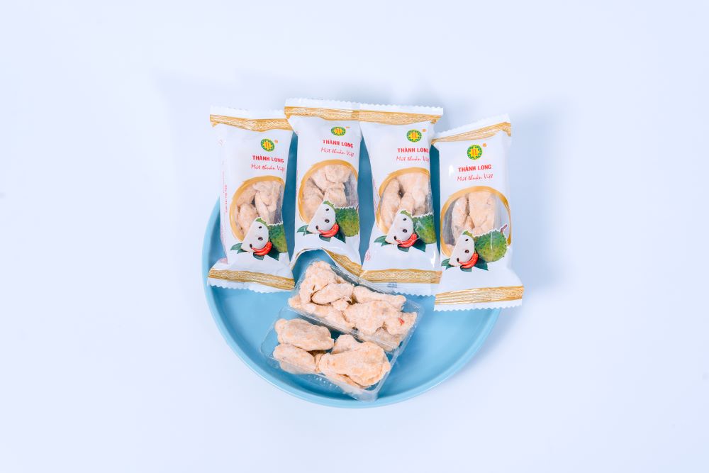 SẢN PHẨM CỦA HỘ KINH DOANH CƠ SỞ BÁNH MỨT THÀNH LONG 1 XOÀI SẤY DẺO Mứt Thuần Việt THÀNH PHẦN : : Trái xoài (80%), đường tinh luyện, muối i-ốt, chất bảo quản (E202),
