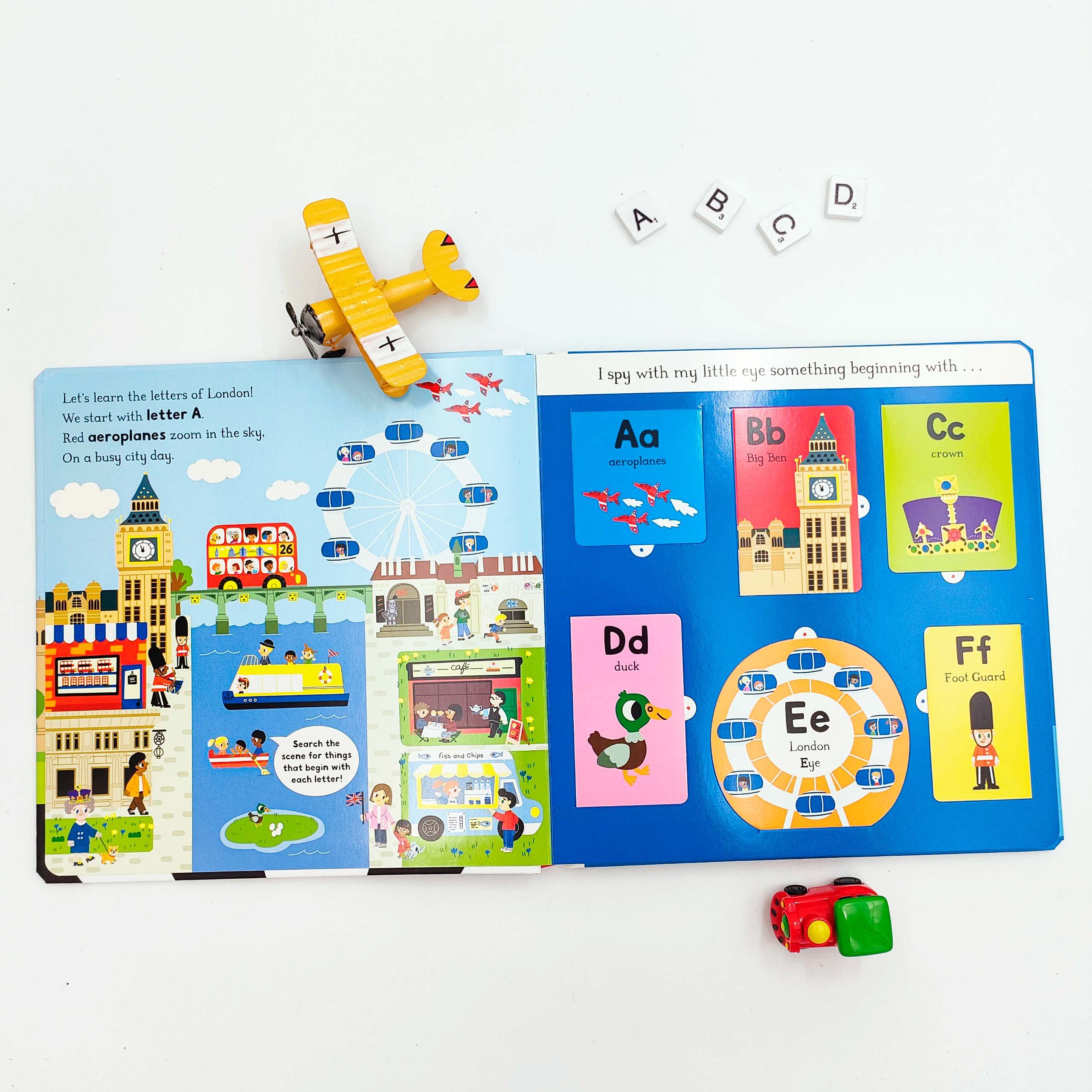 Search the scenes for the Aquarium, Big Ben, the Queen's corgis and much more, then lift the flaps to discover other surprising London things! A fun way to practise the alphabet for pre-schoolers, this book