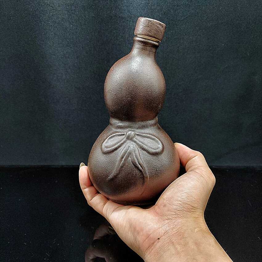 Nậm Rượu Gốm 500ML cao cấp mẫu hồ lô nghiêng màu nâu đất Nậm Đựng Rượu cho giới sành tửu – Nậm Rượu Đẹp (L4) Terracotta Bottle 500ML - Lean Gourd shape – Brown color