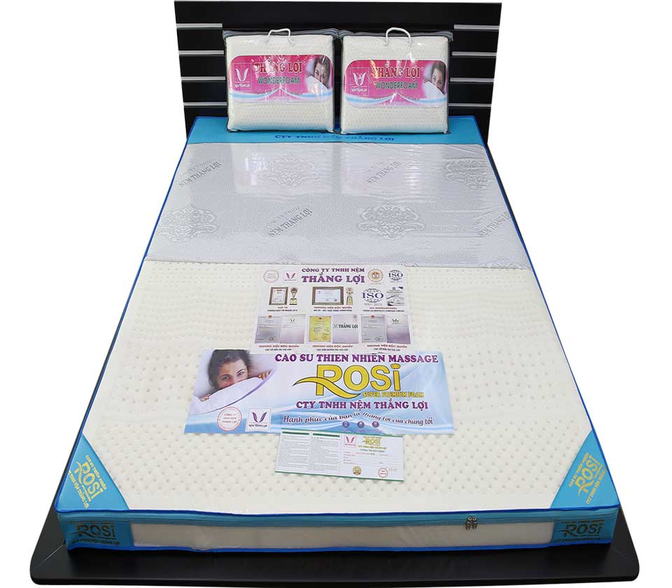 Nệm cao su thiên nhiên massage Rosi thắng lợi kèm theo quà tặng và miễn phí ship hàng toàn quốc