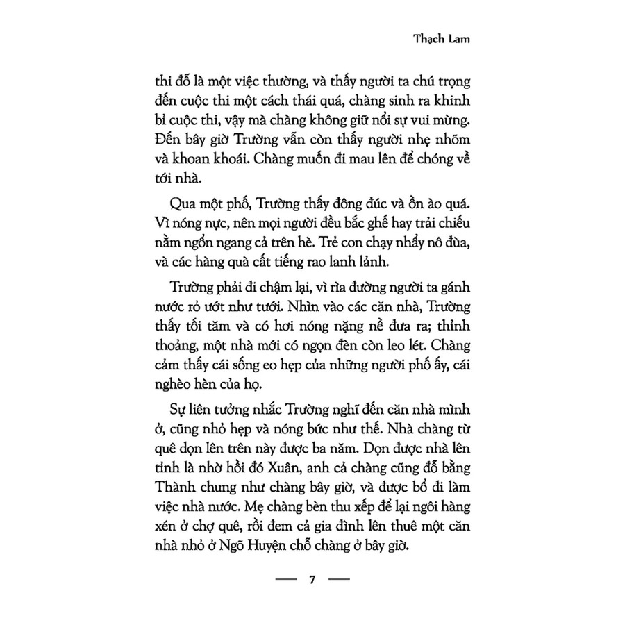 "Trường khẽ thở dài. Trong cái vui của lòng chàng, Trường muốn cho anh chị cũng được sung sướng. Chàng hiểu những nỗi đau đớn mà Dung đã phải chịu vì thái độ lãnh đạm của Xuân. Tuy vậy, giờ nghĩ đến anh, Trường không thấy bực tức như trước nữa. Sự thay đổi của Xuân gần đây, chàng đã đoán biết những duyên cớ. Có lẽ Xuân cũng đã có những hành vi và ý nghĩ của mình. Xuân, không có can đảm trở về với cuộc đời chàng có, với những vui và những buồn của sự sống hằng ngày."